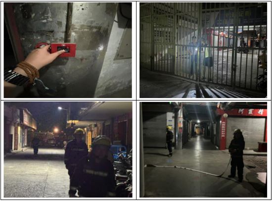 本次拉練采用“雙盲”模式(不預告時間、不設定腳本),通過模擬真實火情全面檢驗市場夜間應急響應能力,夜間值班人員在接到警報后立即攜帶滅火器、對講機以及大門鑰匙前往報警地點,到達現場后立即通過對講機上報真實火警,消防人員在收到出動指令后,迅速出動,前往警報地點,整個過程緊張有序。在到達地點后,根據統一指示,進行應急救援出水測試。隨后,相關部室負責人清點了人員到位情況,對出動人員的著裝、個人防護裝備、消防車等進行了詳細查看。